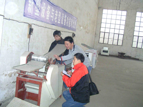 南陽(yáng)客戶實(shí)地考察更換自動(dòng)疊片燴面機(jī) 南陽(yáng)馬老板在10年前就開始做燴面片批發(fā),最早用的一品鮮Hmj-3型設(shè)備,經(jīng)過10年的辛苦經(jīng)營(yíng),目前每天做面30多...[了解詳情]